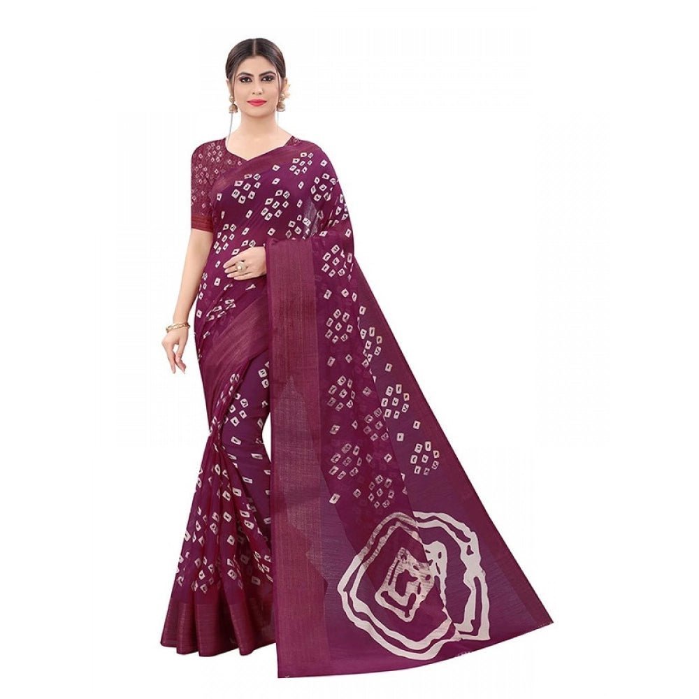 Generic Women's Cotton Silk Bandhni Saree With Unstitched Blouse 5.5Mtr (Purple)