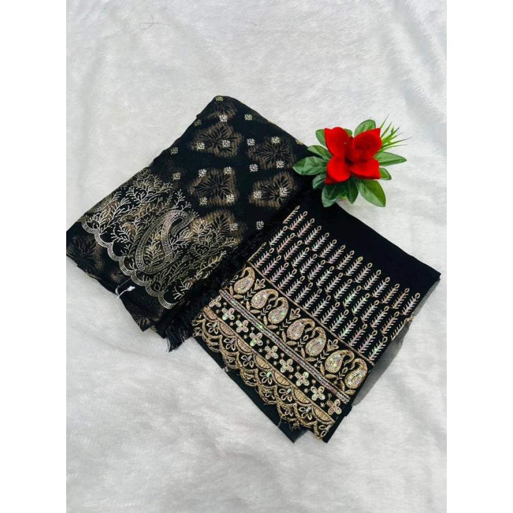 Generic Women's Embroidered Georgette Saree With Unstitched Blouse (Black, 5-6 Mtrs)