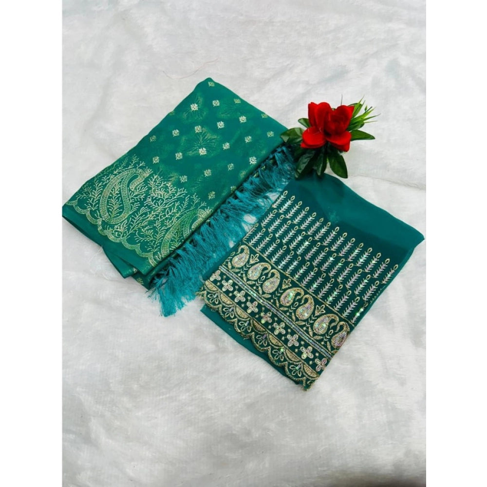 Women's Embroidered Georgette Saree With Unstitched Blouse